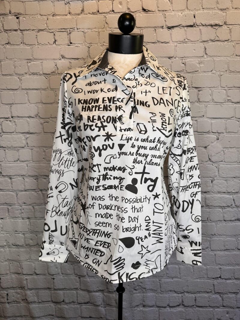 Blouse manche longue Valentina’s Tissus Extensible et confortable Qualité WOW Tissus incroyable Indémodable Neuf avec étiquette prix vente suggéré 180$